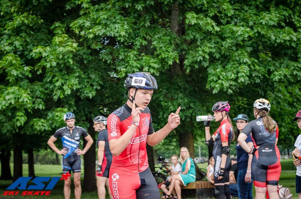 Pirms mēneša pirmajā posmā “Skibox balvā” dalībnieki dažādās vecuma grupās sacentās sprintā ar kopēju startu, pašiem mazākajiem veicot 200m, bet pārējiem 500m. Šoreiz arī bija sprints, tikai divreiz garāks, un dalībniekiem veicot tikai vienu braucienu, ne divus, kā tas bija pirmajā posmā maijā. Pieaugušo grupā vīriešiem Latvijas vadošajam skrituļslidotājam Reinim Znotiņam ar uzrādīto rezultātu 1000m 1:43:52 izdevās vēlreiz iegūt pirmo vietu, taču šoreiz uzvara nenāca tik droši, jo tikai 0,07 sekundes viņam piekāpās Sandris Šnore. Mazāk kā sekundi no uzvarētāja atpalika Lauris Bitenieks, līdz ar to pirmais trijnieks arī šoreiz bija tāds pats. Jānim Jurdžam bija iespējas iespraukties trijniekā, taču vēlreiz nācās samierināties ar ceturto vietu, līdz pjedestālam pietrūkstot ceturtdaļsekundei. Jau ar dažu sekunžu atstarpi no pirmā četrinieka piektajā un sestajā vietā finišēja Arvis Miezītis un Jēkabs Saulītis.