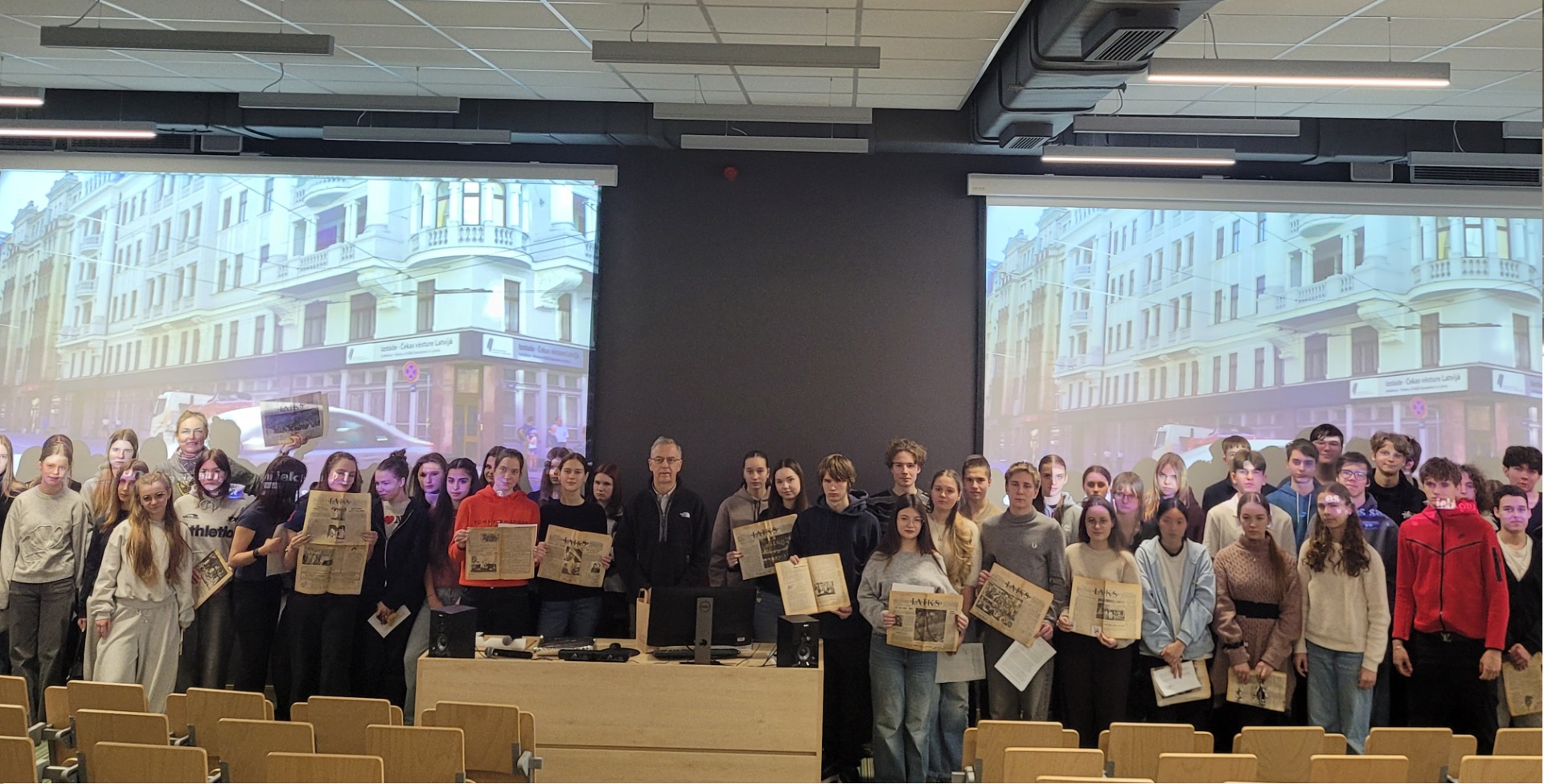 Paralēli vidusskolas skolēniem bija iespēja tikties ar ievērojamo latviešu diasporas pārstāvi ASV, dokumentālās filmas “Valiant! Brauciens uz brīvu Latviju” autoru J. Bļodnieku. Skolēni noskatījās filmu un pēc tās aktīvi uzdeva jautājumus autoram. Šī 70 minūšu filma atklāj, ka cīņa par Latvijas brīvību norisinājās ne tikai pašā Latvijā ‒ to veicināja arī tie, kuriem arī trimdā Latvijas brīvība bija un ir sirdī. Amerikas un Eiropas latvieši aktīvi iesaistījās pretpadomju kustībā, piedalījās demonstrācijās un akcijās, un lozungs “NYET, NYET, SOVIET!” kļuva plaši pazīstams visā pasaulē.