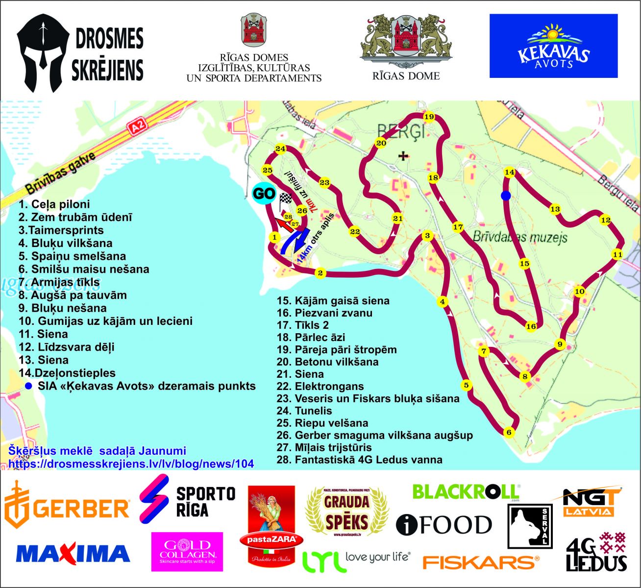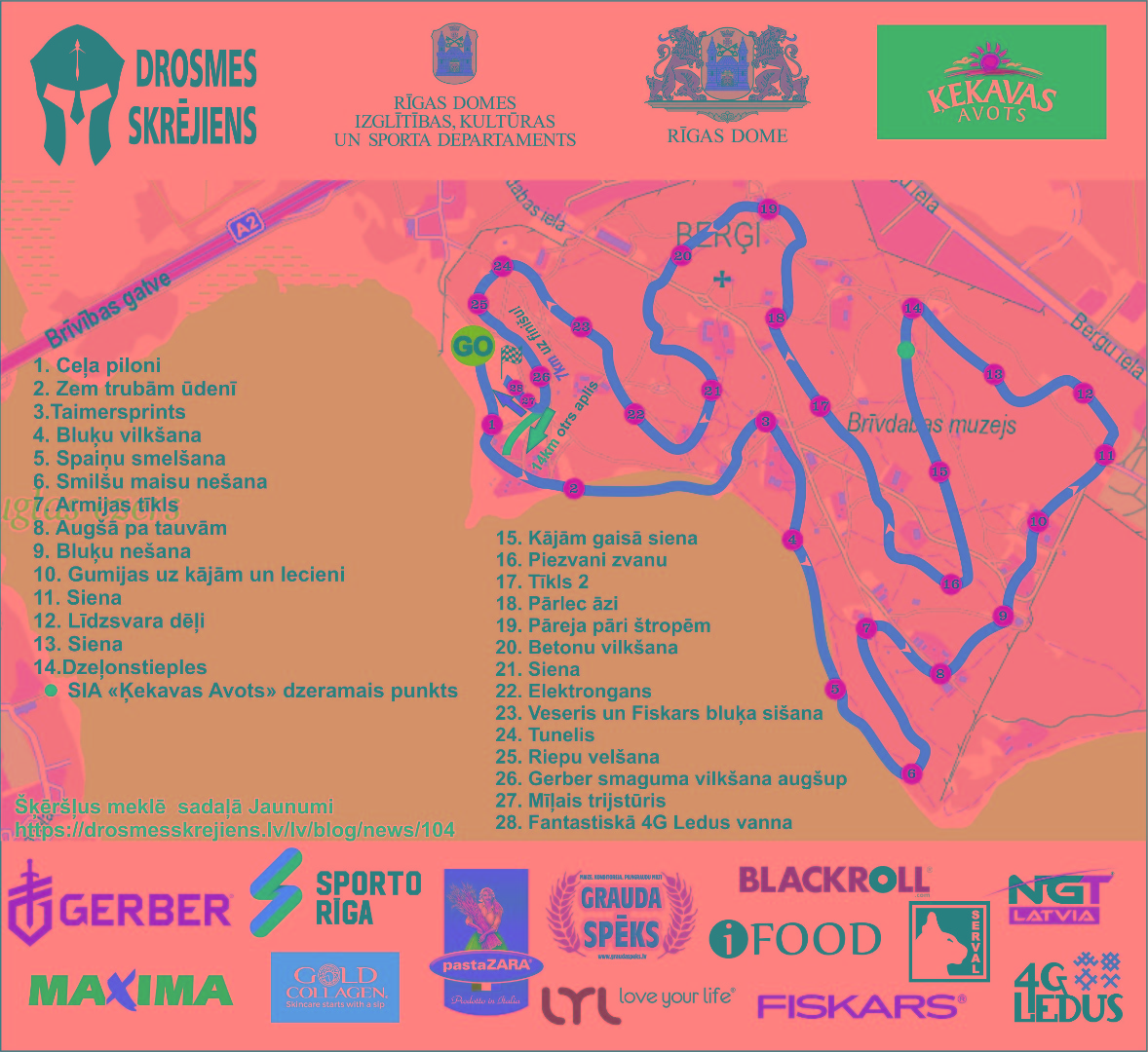 Trasē būs SIA “Ķekavas avots” dzeramais punkts. Pirms katra starta drosmīgos iesildīs treneri no Sporto Rīga, kuri arī aktīvi paši veido komandas un piedalās sacensībās visus šos gadus.