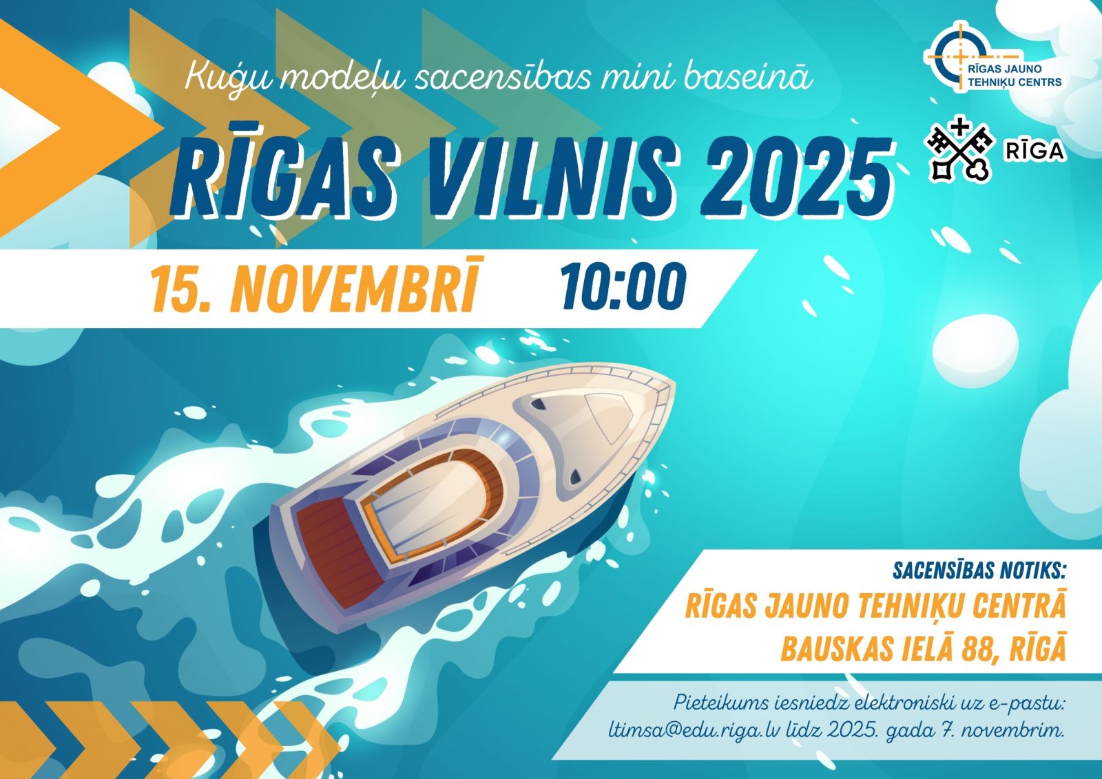 2025. gada 15. novembrī plkst. 10.00 Rīgas Jauno tehniķu centrā (Bauskas ielā 88) notiks kuģu modeļu sacensības mini baseinā “Rīgas vilnis 2025”, kurās aicināti piedalīties bērni un jaunieši no visas Latvijas.