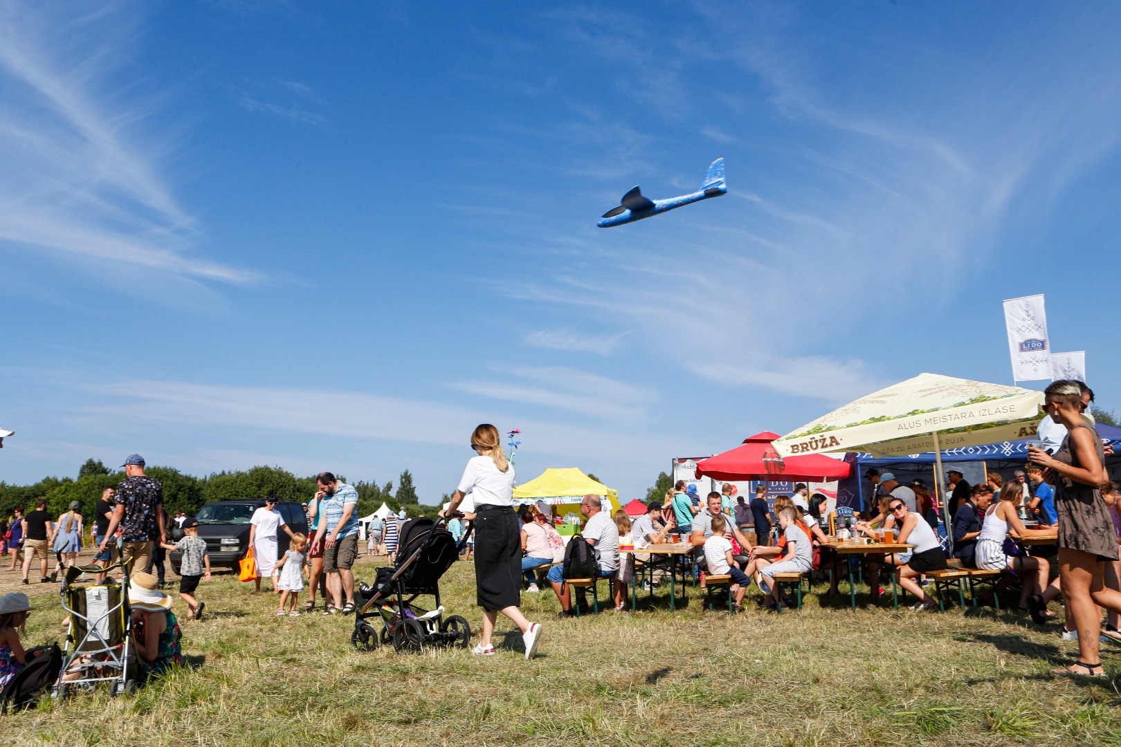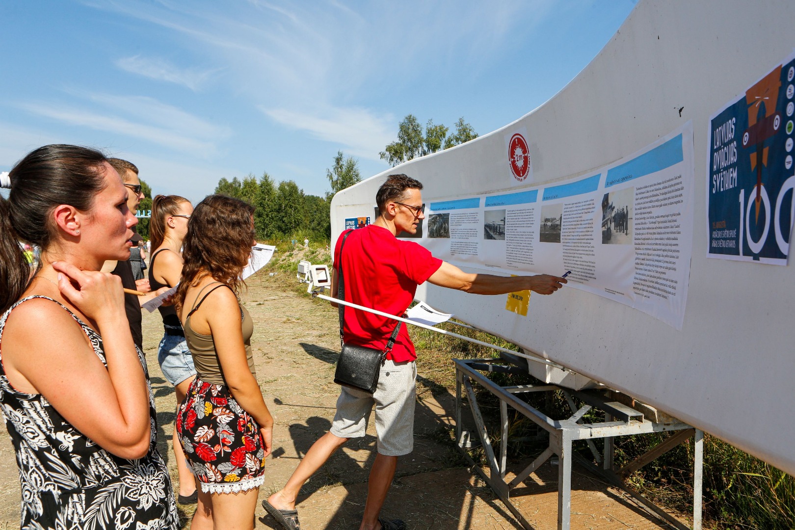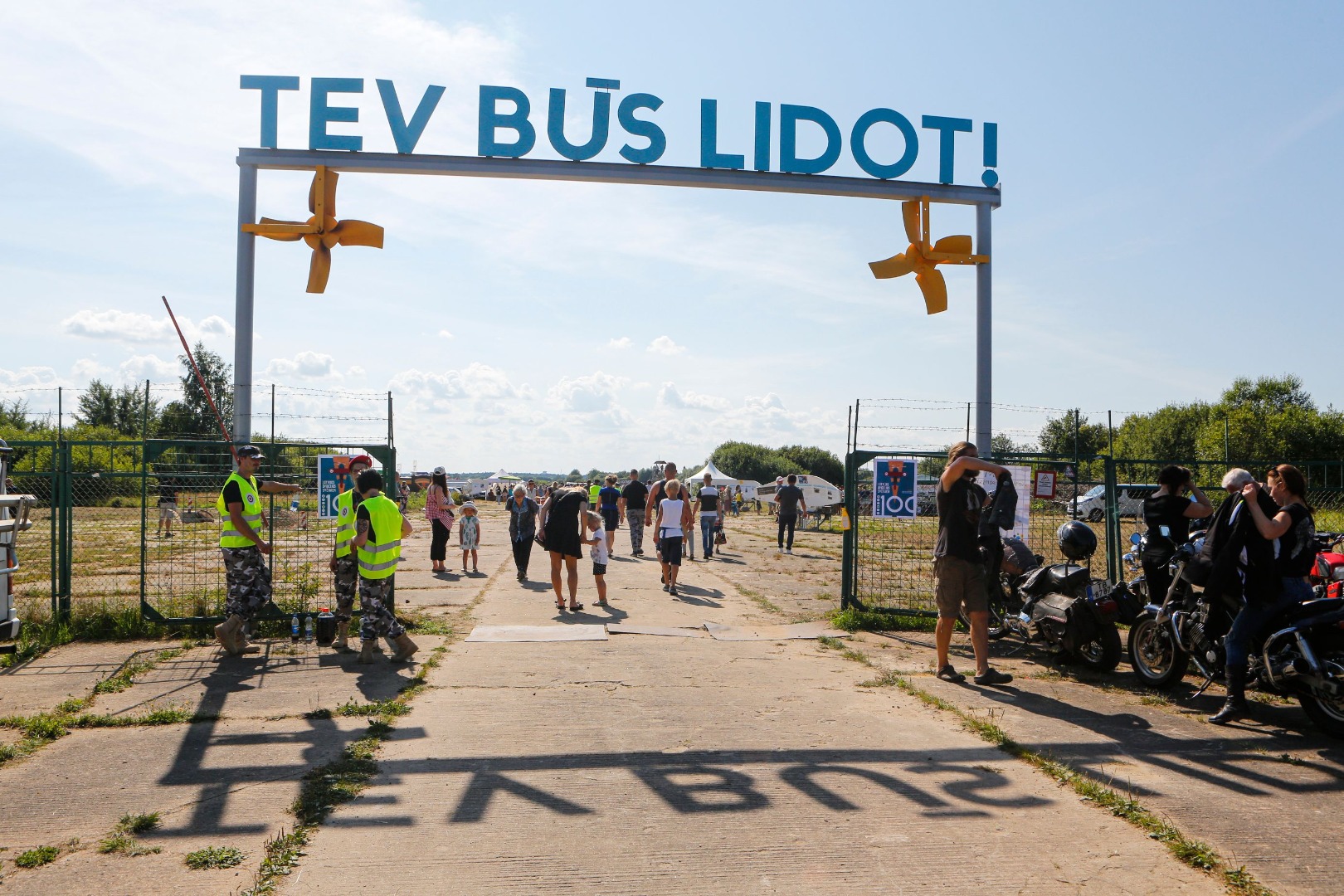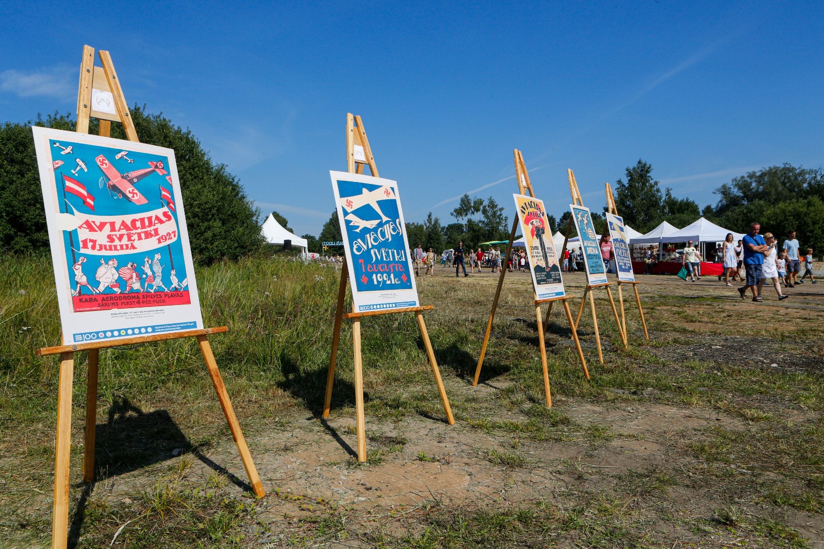 Par spīti karstajai saulei, cilvēki uz svētkiem plūda straumēm. Pie vārtiem tos sagaidīja brīvprātīgie apsargi (aizsargu bataljons no Valkas), spārnojošs sauklis “Tev būs lidot” (iepriekšējā gada svētku moto) un vēsturiskā konkursa anketas. “Pastaiga aviācijas vēsturē” aicināja pievērst uzmanību radaru antenām, uz kurām bija izvietoti interesanti fakti no Latvijas aviācijas vēstures – par Spilvi kā Latvijas aviācijas šūpuli, pirmajiem aviācijas svētkiem 1920.gada 25.jūlijā, pirmajiem Jūras aviācijas svētkiem Liepājā 1925.gada 19.jūlijā, par lidotājiem, tehniku un viņu kopā paveikto. Daudzi teksti bija citāti no pirmavotiem – kolorīti izraksti no tā laika preses. Par pirmavotiem uzskatāmi arī vēsturiskie aviācijas svētku plakāti, kuru kopijas varēja aplūkot kā atsevišķu ekspozīciju un pārliecināties par šīs tradīcijas vērienu. Izzinošās ekspozīcijas noslēgumā radara spārns ar žurnālista Imanta Vīksnes tekstu vēstīja par šodienas situāciju - “Spilves lidostā notiek noziegums pret vēsturi”. Tas izskaidroja situāciju, kāpēc svētki nenotiek pie galvenās ēkas un cienīgā veidā, taču nespēja sabojāt svētku prieku.