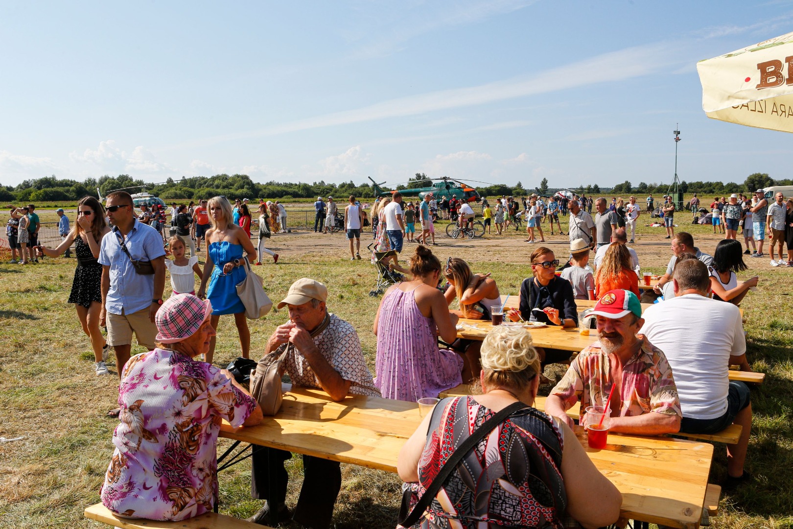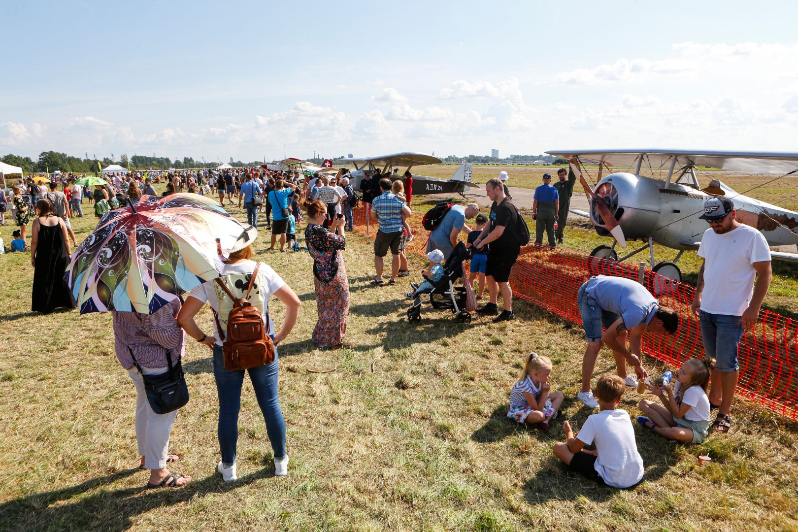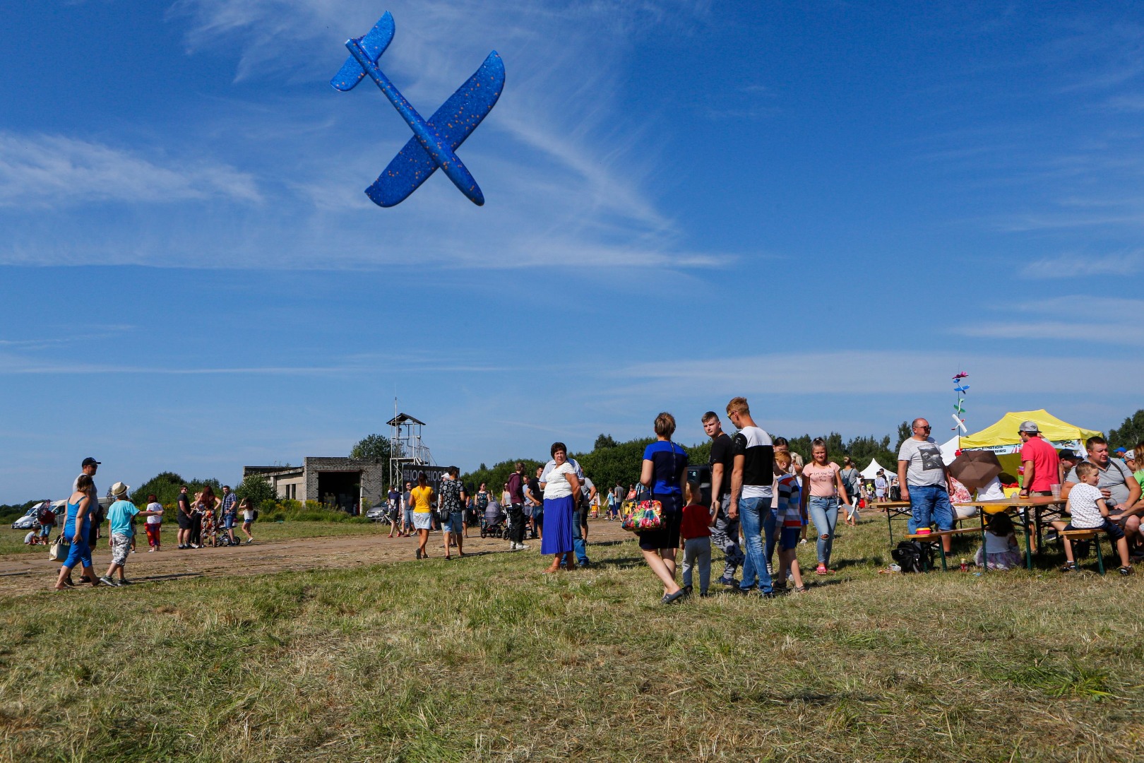 Par spīti karstajai saulei, cilvēki uz svētkiem plūda straumēm. Pie vārtiem tos sagaidīja brīvprātīgie apsargi (aizsargu bataljons no Valkas), spārnojošs sauklis “Tev būs lidot” (iepriekšējā gada svētku moto) un vēsturiskā konkursa anketas. “Pastaiga aviācijas vēsturē” aicināja pievērst uzmanību radaru antenām, uz kurām bija izvietoti interesanti fakti no Latvijas aviācijas vēstures – par Spilvi kā Latvijas aviācijas šūpuli, pirmajiem aviācijas svētkiem 1920.gada 25.jūlijā, pirmajiem Jūras aviācijas svētkiem Liepājā 1925.gada 19.jūlijā, par lidotājiem, tehniku un viņu kopā paveikto. Daudzi teksti bija citāti no pirmavotiem – kolorīti izraksti no tā laika preses. Par pirmavotiem uzskatāmi arī vēsturiskie aviācijas svētku plakāti, kuru kopijas varēja aplūkot kā atsevišķu ekspozīciju un pārliecināties par šīs tradīcijas vērienu. Izzinošās ekspozīcijas noslēgumā radara spārns ar žurnālista Imanta Vīksnes tekstu vēstīja par šodienas situāciju - “Spilves lidostā notiek noziegums pret vēsturi”. Tas izskaidroja situāciju, kāpēc svētki nenotiek pie galvenās ēkas un cienīgā veidā, taču nespēja sabojāt svētku prieku.