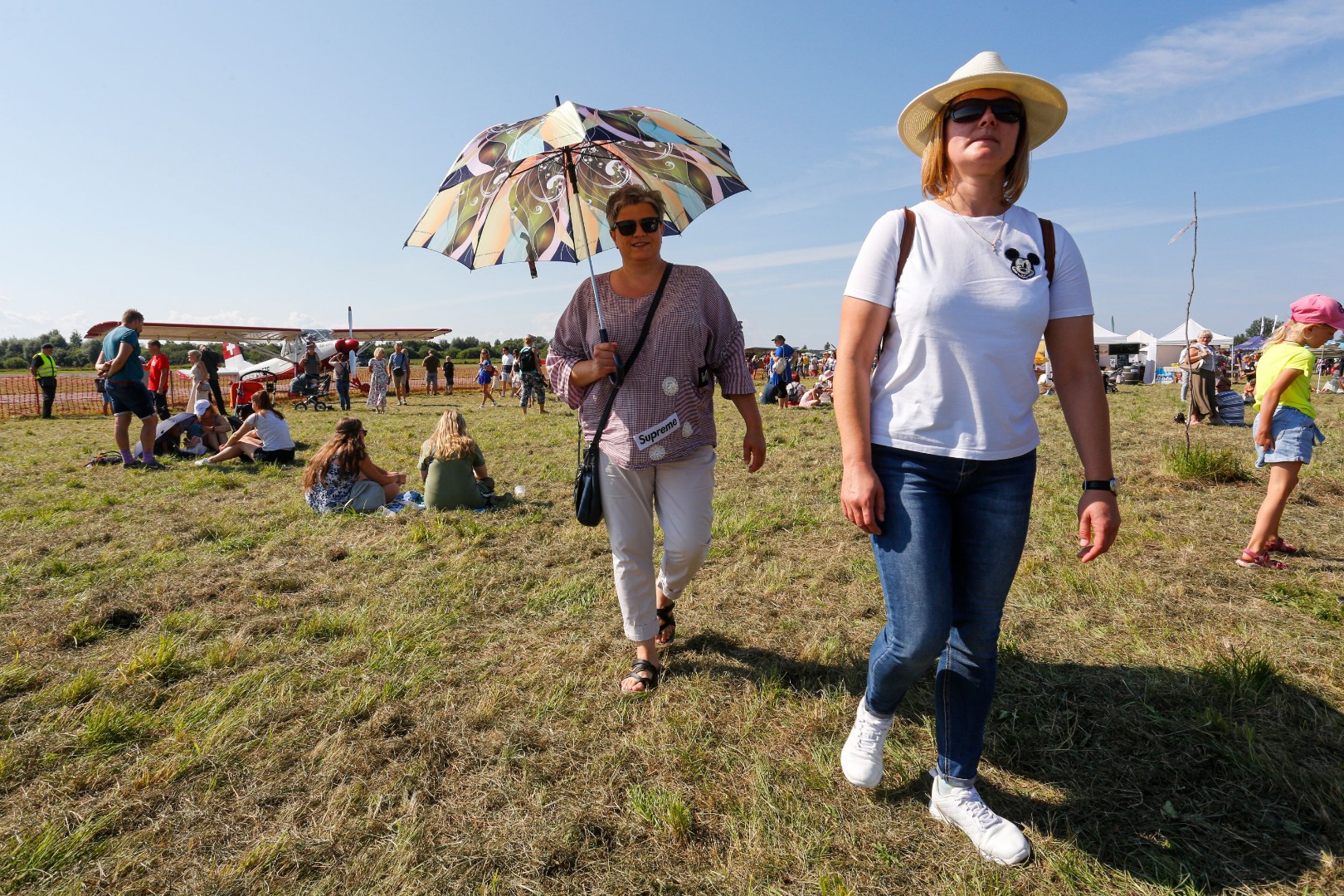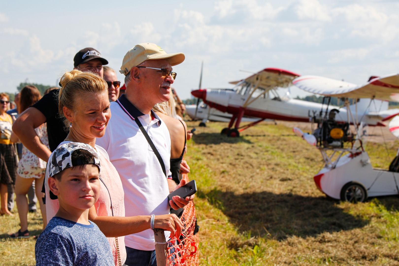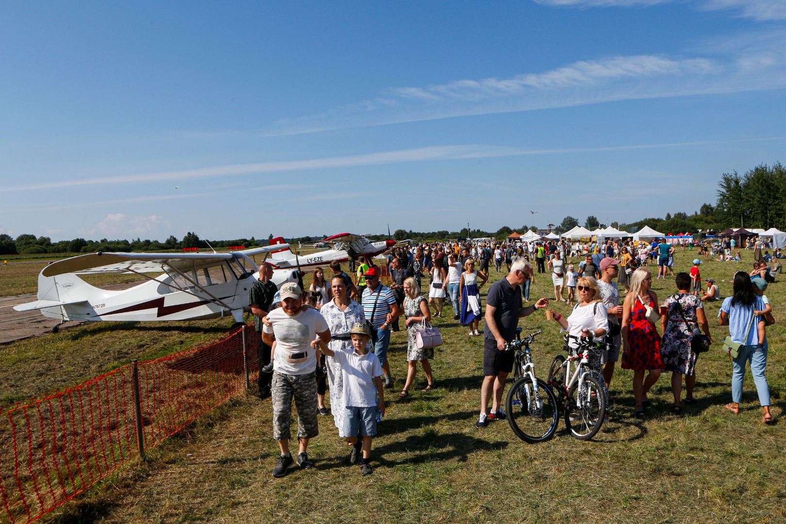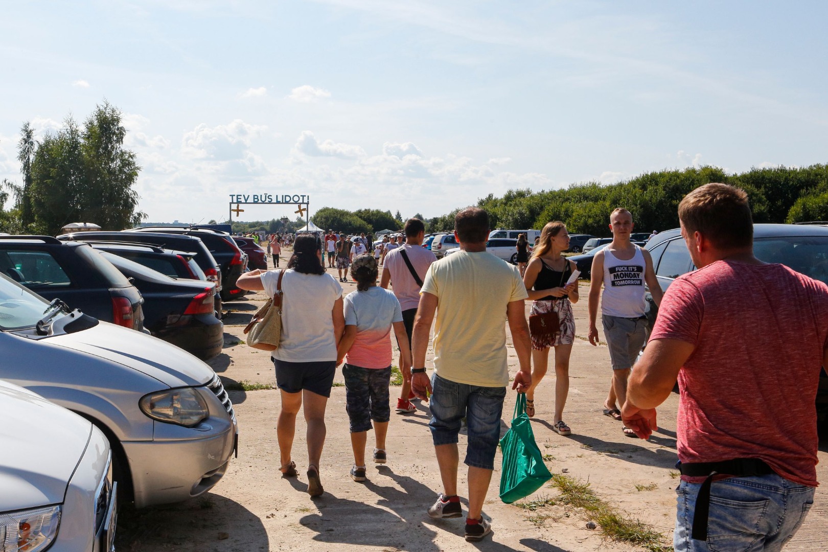 Par spīti karstajai saulei, cilvēki uz svētkiem plūda straumēm. Pie vārtiem tos sagaidīja brīvprātīgie apsargi (aizsargu bataljons no Valkas), spārnojošs sauklis “Tev būs lidot” (iepriekšējā gada svētku moto) un vēsturiskā konkursa anketas. “Pastaiga aviācijas vēsturē” aicināja pievērst uzmanību radaru antenām, uz kurām bija izvietoti interesanti fakti no Latvijas aviācijas vēstures – par Spilvi kā Latvijas aviācijas šūpuli, pirmajiem aviācijas svētkiem 1920.gada 25.jūlijā, pirmajiem Jūras aviācijas svētkiem Liepājā 1925.gada 19.jūlijā, par lidotājiem, tehniku un viņu kopā paveikto. Daudzi teksti bija citāti no pirmavotiem – kolorīti izraksti no tā laika preses. Par pirmavotiem uzskatāmi arī vēsturiskie aviācijas svētku plakāti, kuru kopijas varēja aplūkot kā atsevišķu ekspozīciju un pārliecināties par šīs tradīcijas vērienu. Izzinošās ekspozīcijas noslēgumā radara spārns ar žurnālista Imanta Vīksnes tekstu vēstīja par šodienas situāciju - “Spilves lidostā notiek noziegums pret vēsturi”. Tas izskaidroja situāciju, kāpēc svētki nenotiek pie galvenās ēkas un cienīgā veidā, taču nespēja sabojāt svētku prieku.