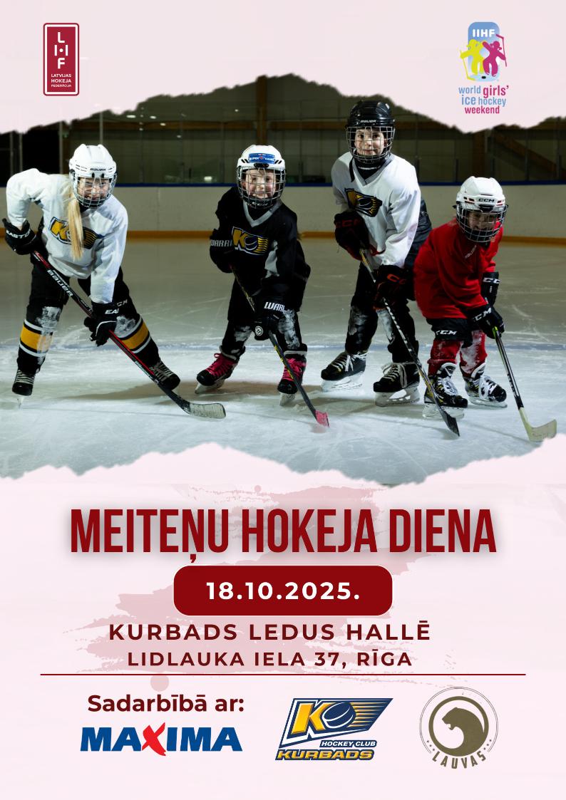 Lai veicinātu sieviešu hokeja attīstību un hokeja kā veselīga dzīvesveida ieraduma ieviešanu un atbalstītu meiteņu iesaisti hokejā, Latvijas Hokeja federācija sadarbībā ar hokeja skolu Kurbads un sieviešu hokeja klubu Lauvas 2025.gada 18.oktobrī Kurbads ledus hallē, Lidlauka ielā 37, Rīgā, rīko Meiteņu hokeja dienu.