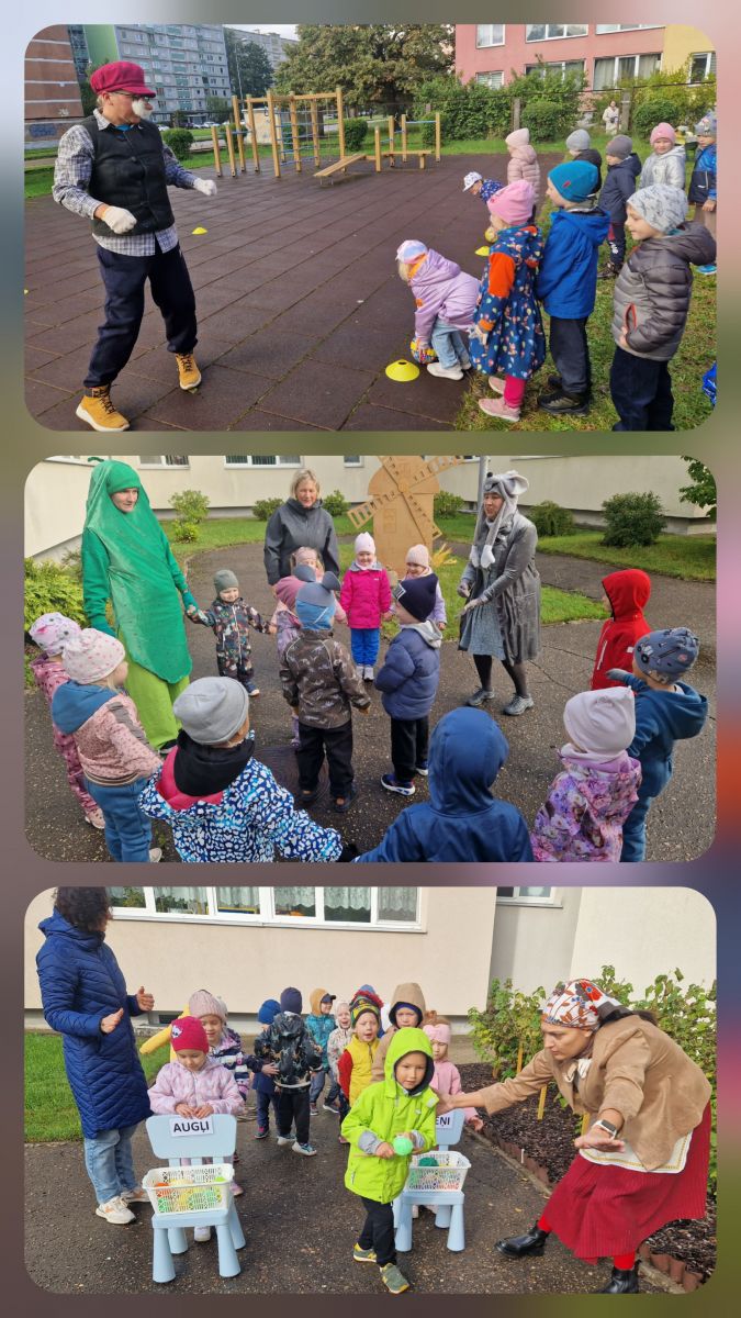 No rīta pagalmā rosījās mazie pirmsskolēni – veidoja mandalas no dārzeņiem un augļiem, dejoja, rotaļājās un priecājās par krāsaino rudeni. Arī viņu pasākums bija piepildīts ar kustību, radošumu un kopības sajūtu, jo grupiņas darbojās kopā.