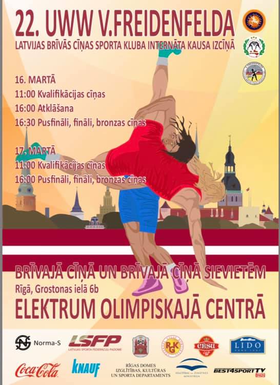 16. un 17. martā Rīgā Elektrum Olimpiskajā centrā (Grostonas iela 6b) risināsies 22. UWW V. Freidenfelda Latvijas brīvās cīņas sporta kluba internāta kausa izcīņas sacensības brīvajā cīņā un brīvajā cīņā sievietēm, kurās savu dalību pieteikuši sportisti no vairāk nekā 10 valstīm.