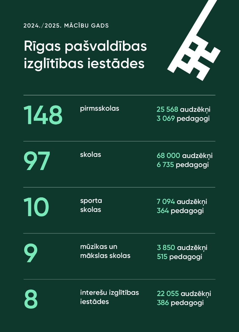 Šogad galvaspilsētā darbosies 97 skolas, 148 pirmsskolas izglītības iestādes, desmit sporta skolas, deviņas mūzikas un mākslas skolas un astoņas interešu izglītības iestādes.