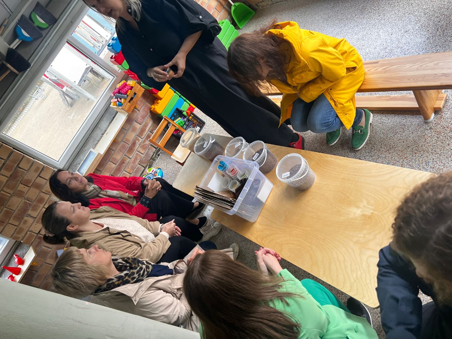 Pasākuma otrajā daļā viesi sadalījās divās grupās, no kurām vieni darbojās krāsaino smilšu tehnikā, savukārt otrai grupai bija orientēšanās uzdevumi pirmsskolas teritorijā.
