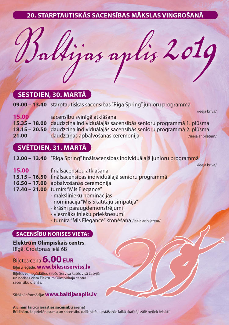 Šogad īpašās un unikālās sacensības mākslas vingrošanā “Baltijas aplis” svinēs 20 gadu jubileju, kad 30. un 31. martā Elektrum Olimpiskajā centrā (Grostonas iela 6b) skatītājus priecēs labākās mākslas vingrotājas no 20 valstīm.