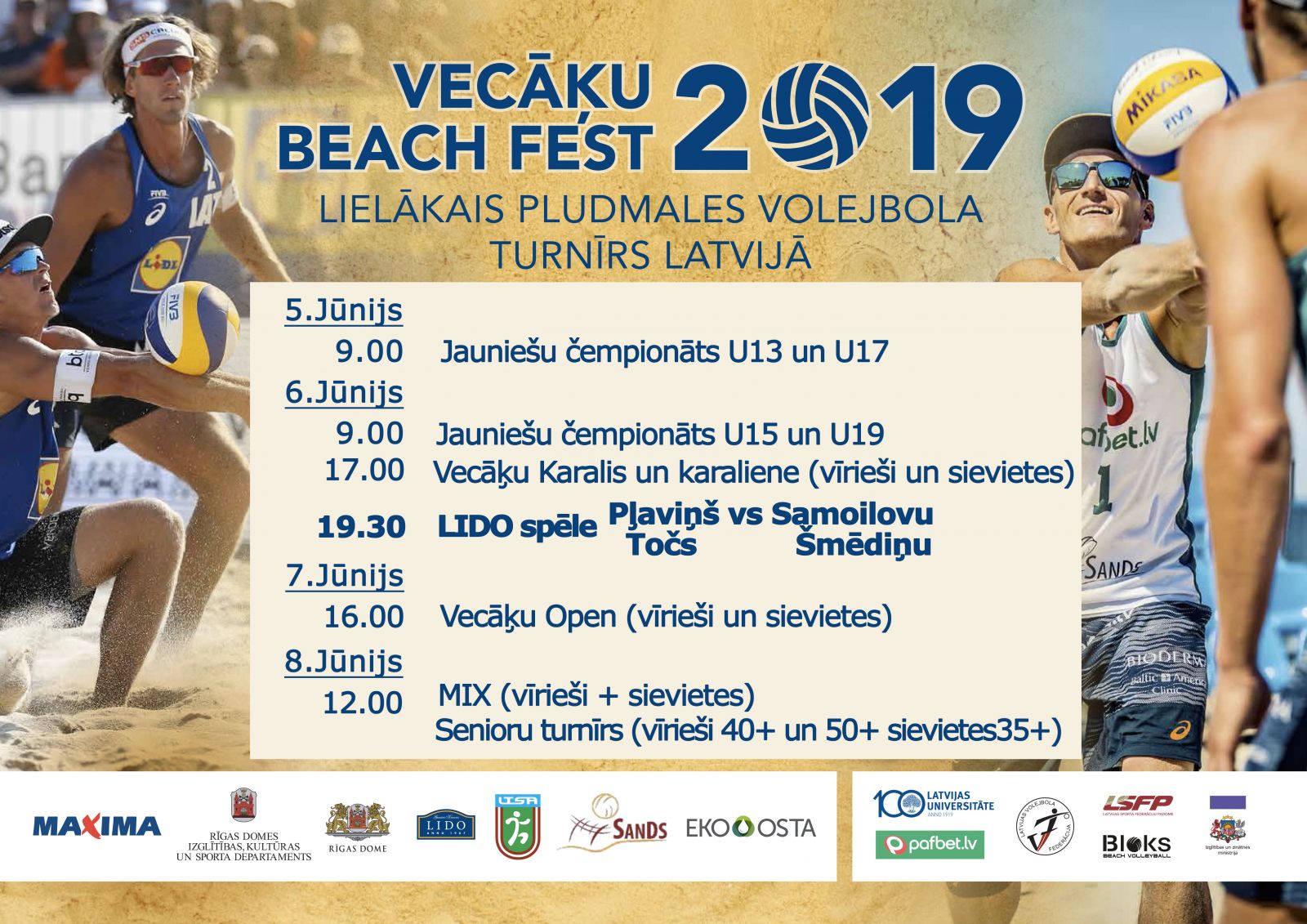 Vecāķu BEACH FEST 2019 ir pludmales volejbola svēkti visiem, tāpēc amatieriem, gan tiem, kas ir iesācēji, gan tie, kam pludmales volejbols ir dzīvesveids, trīs dienu laikā būs lieliska iespēja dzīvot pludmales volejbola noskaņās. Katrs turnīrs pēc grupu izspēlēm tiks sadalīts divās daļās, lai visa līmeņa dalībniekiem būtu iespēja izmēģināt savus spēkus uz laukuma un kārtīgi izspēlēties pludmales volejbolu. Amatieru turnīri sāksies jau 6.jūnijā plkst.17:00 ar Vecāķu Karalis & Karaliene turnīru. 7.jūnijā pēcpusdienā pēc plkst.16.00 notiks Vecāķu Open turnīrs un 8.jūnijā no plkst 12.00 aicināsim spēlētajus uz MIX un Senioru turnīriem.