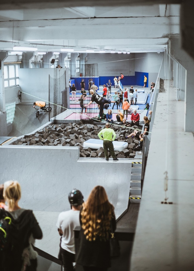 THE SPOT mūsdienīgais alternatīvā sporta komplekss ir unikāls projekts, kas iekārtots vecas instrumentu ražotnes telpās, kuras ir renovētas un pielāgotas centra vajadzībām. Kopējā centra platība ir 2800 m2 , kurā iekārtotas atsevišķas zonas ar batutiem un porolonu bedri, klinšu kāpšanas sienu, fiziskās sagatavotības treniņu zāli, kā arī mūsdienu tendencēm atbilstošu skeitparku, kas papildināts ar treniņiem īpaši piemērotām konstrukcijām – tās veidotas ar speciālu mīkstu pārklājumu, lai jaunieši droši varētu apgūt ekstrēmajiem sporta veidiem raksturīgos akrobātiskos trikus. Centrs atrodas Rīgā, Ūnijas ielā 12 - blakus „VEF” teritorijai.