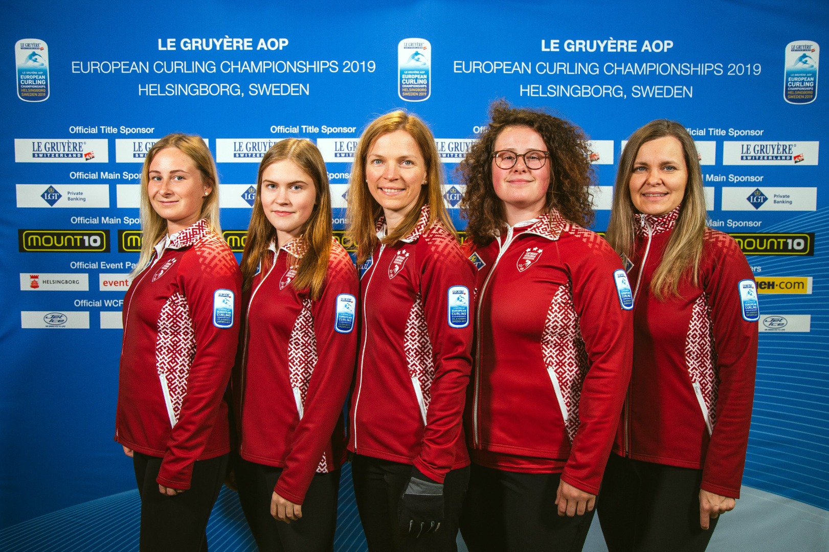 Latvijas sieviešu izlases sastāvs: Iveta Staša-Šaršūne (skips), Ieva Krusta, Santa Blumberga, Evelīna Barone, Tīna Siliņa, treneris Ritvars Gulbis.