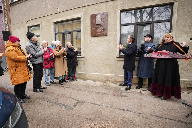 Piektdien, 19. decembrī, pie ēkas Eduarda Smiļģa ielā 23a svinīgi atklāta no jauna izgatavotā piemiņas plāksne folkloristam, rakstniekam un publicistam Krišjānim Baronam.